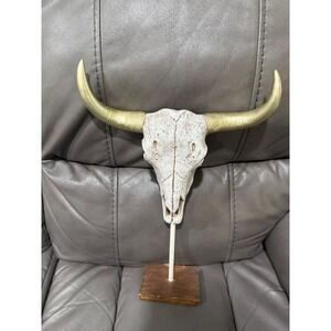 Faux Steer Skull Sculpture Gold Horns Rustic Western Decor