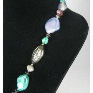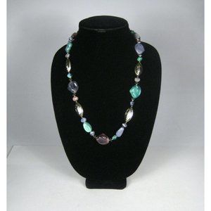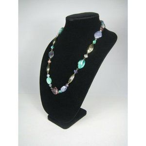 Faux Stone Plastic Beaded Necklace 26 In Women Jewelry Goldtone Strand Green