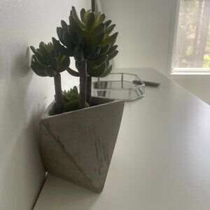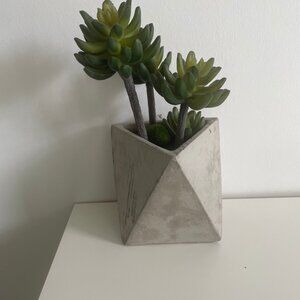 Artificial succulent plant in a modern geometric concrete pot.