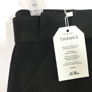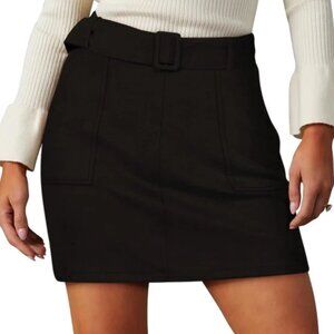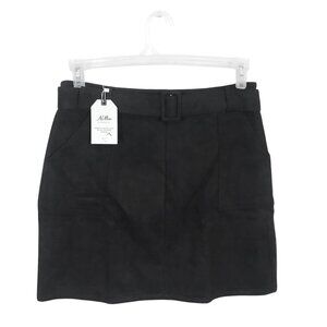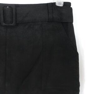 Faux Suede A-Line Skirt Pockets Belt Stretch Solid Black Size L, NiMin