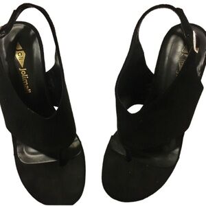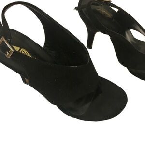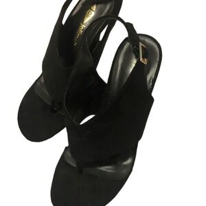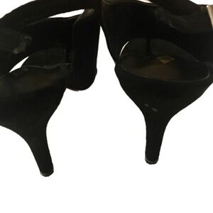 Faux Suede Black Buckle Open Toed Pumps Size 6