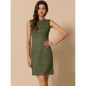 Faux Suede Boat Neck Sleeveless Sheath Dresses Army Green