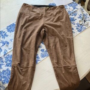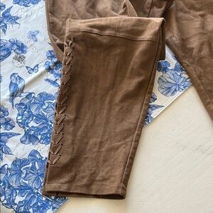 Faux Suede Brown Leggings with Lace-Up Detail Size L by Lysse