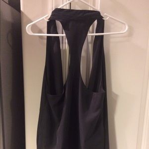 Charcoal racerback vest. Unique style that allows more of the "under shirt" to be seen. Also great for adding some length to an outfit where the shirt underneath might be a bit short. Great with tunics!