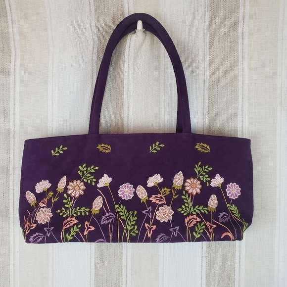 Tags: working woman, business casual, work trip, office accessories, purse, chic, trendy, vintage, classy, classic, hobo, vintage, retro, y2k, casual, embroidery, purple