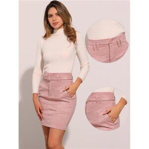 This solid color bodycon skirt is made up of several design points: faux suede fabric, zip up, high waist, belted, with pockets, slightly stretchy