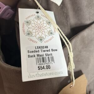 Faux Suede Tiered Ruffled Midi Skirt Tan Womens M Western Boho Peasant Tie Back