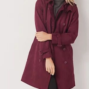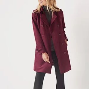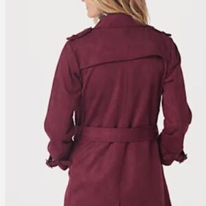 EUC. Feels like real suede, very flexible and soft hand, but machine washable cold/gentle/drip dry. ALL the classic trench coat military details by the master of designer trench coats. He called this color Vino, a bit brighter than Burgundy. A dream coat. Double breasted Princess seams front and back Flaps on front left and back Double belt loops so you can choose to meet your waist Matching belt Satin lining Deep pockets So much fun to wear, buttoned and belted, or open with belt knotted in back. Worn a few times and I love this but not my color (I own the same coat in Loden and am keeping that). You will look and feel like a million dollars! Freshly washed and drip dried, ready for you. Sold on QVC and the item number there is A370421. Go to the QVC site and enter the item number to see video of this on a model, the rave reviews, and all the measurements. Firm price. If this does not sell for $40 it will go to charity in November.
