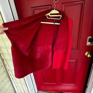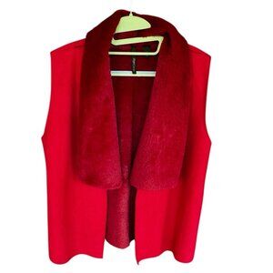 Faux Suede and Faux Fur Red Open Front Vest Women Size Large Skye’s The Limit