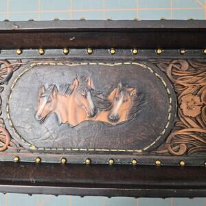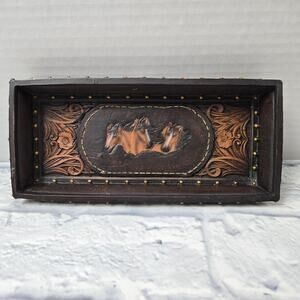 Faux Tooled Leather Western Horse Studded Trinket Tray Silver Conchas