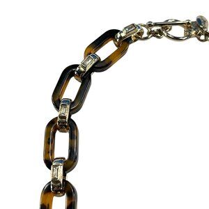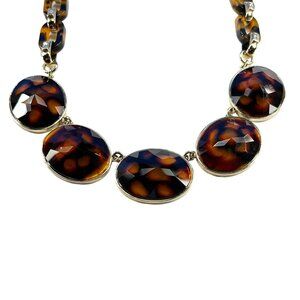 Faux Tortoise Shell Necklace Ann Taylor Statement Links Rhinestones Gold Tone