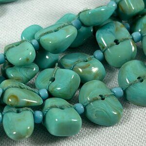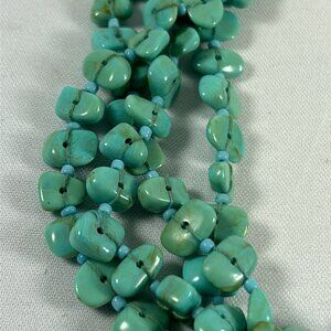 Faux Turquoise 4 Tier Oval Pendant Necklace Chippy Statement Silver Tone 16-19" Beaded in good preowned condition.