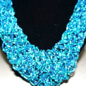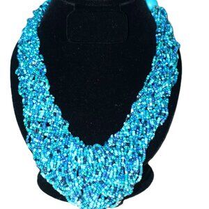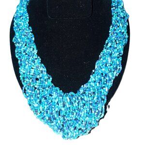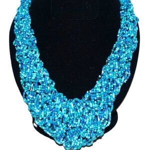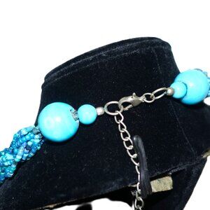You are viewing a cute Faux Turquoise Bib necklace that measure in length 11.5", width 1". The necklace is in very good condition.