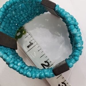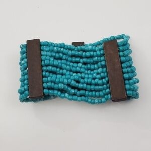 Faux Turquoise Beaded Bracelet Wood Brown Southwes
