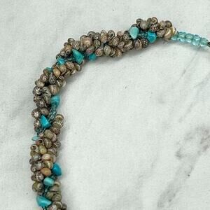 Faux Turquoise Chunky Beaded Tassel Pendant Toggle Necklace