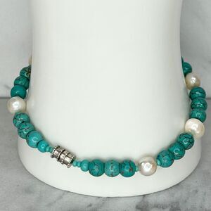 Faux Turquoise Faux Pearl Beaded Screw Clasp Bracelet