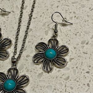 Faux Turquoise Floral Earrings & Necklace Set in vintage bohemian style