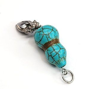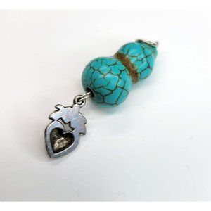 Faux Turquoise Gourd Bead and Silver Heart Charm Pendant CT30