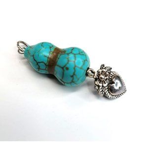 Faux Turquoise Gourd Bead and Silver Heart Charm Pendant