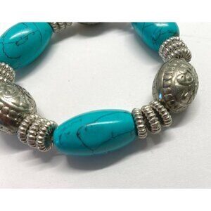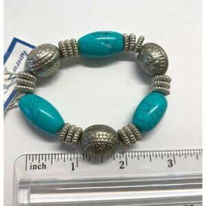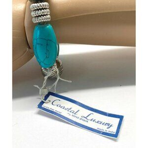 Faux Turquoise Silver Tone Bracelet Stretch Bead Sand Shack Coastal Luxury Beach