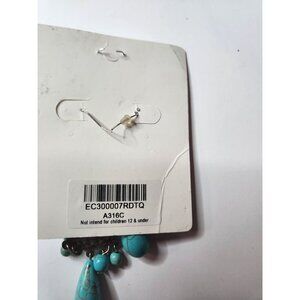 These Ciel Collection earrings feature a sophisticated design with turquoise tone beads and silver-toned metal that add a touch of elegance to any ensemble. Crafted with care, they are lead and nickel safe, ensuring comfort for sensitive skin. These chandelier earrings are designed for adults, offering a stylish and timeless accessory.