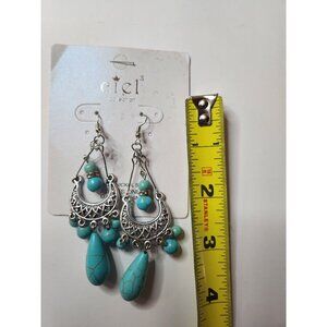Faux Turquoise Silver tone Chandelier Earrings Ciel western statement party