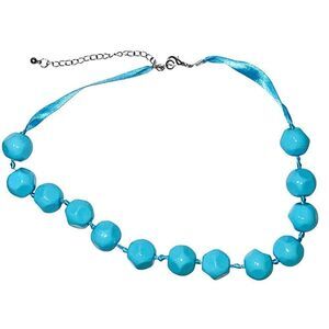 - Faux turquoise ribbon necklace with silver clasp