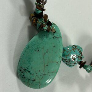 Faux Turquoise Stone Beaded Teardrop Pendant Necklace Chippy Chunky Southwestern in good preowned condition. Measures 17-20".