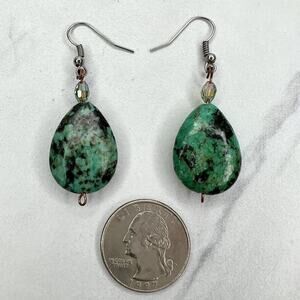 Faux Turquoise Teardrop Beaded Earrings Pierced Pair