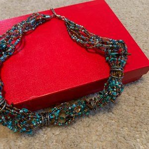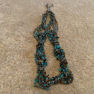 Faux Turquoise, Tiger Eye and Beaded Statement Necklace