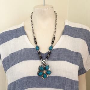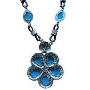 Faux Turquoise and Silver Tone Chunky Statement Necklace Bohemian Southwestern