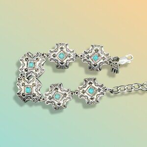Faux Turquoise and Silver Tone Concho Chain Bracelet #1440