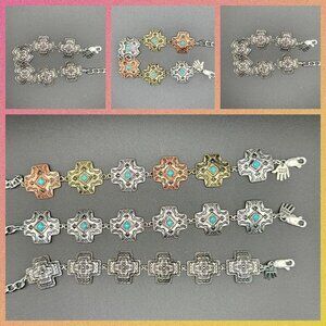 Concho and silver tone chain bracelet with faux turquoise 1440