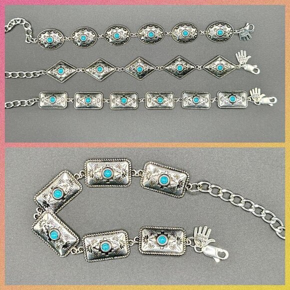 Faux Turquoise and Silver Tone Concho Chain Bracelet #1443