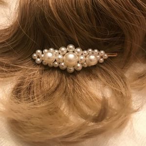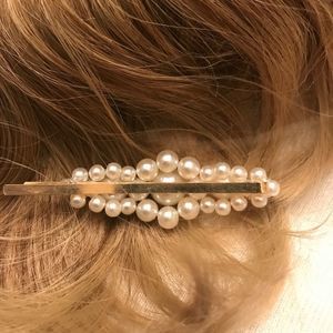 Faux White Pearl Covered Barrette on gold Bobbie Pin NWOT