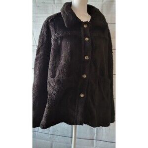 Faux Wool Plush Button-Down Coat Jacket With Pocket Coat Sz XL