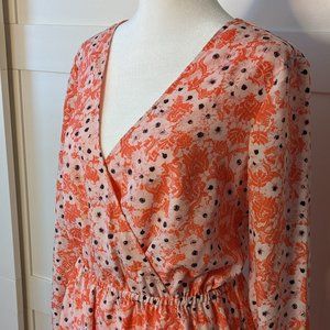 Faux Wrap Long Sleeve Dress with Elastic Waist Spring Poppy Print Size 8 Cece