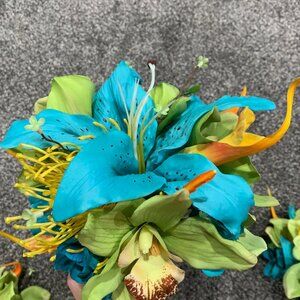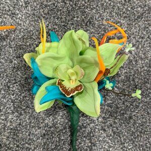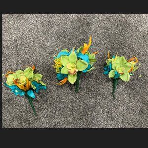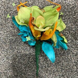 Faux flowers - 1 small bouquet & 2 boutonnieres (used for a summer wedding). All were put together by my mom! They're very colorful & pretty! Could be used for something else as well.