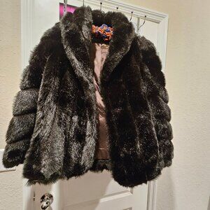 American Signature Faux fur coat that is in excellent condition for wearing day or night. Comes with knitted hanger and Coat cover for protection.