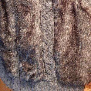 Sleeveless combination sweater and faux fur vest. It is all in Gray. there is no brown coloring in the fur. the inside lining is 100 percent polyester silk lining.