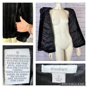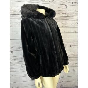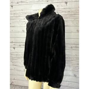 Faux fur hooded coat jacket zippered closing Dressbarn size small