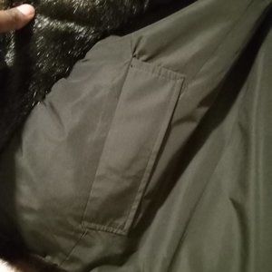 Dark brown faux fur jacket. In really good condition, still has the shine to the fur. Jacket can be worn inside out.