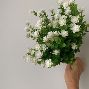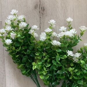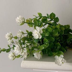 Faux greenery set of 3 stems white flowers home Decor spring summer