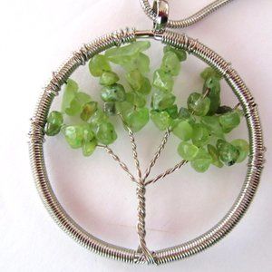 Faux jade wire wrapped silver tree of life pendant & 14" chain