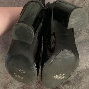 Black faux leather boots.
