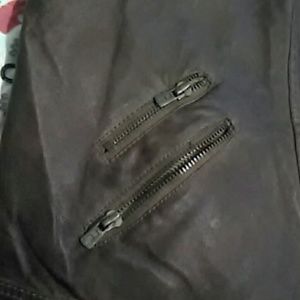 Dark brown faux leather zip up Moto jacket. Perfect for adding just a touch of warmth to any fall outfit. Very comfortable.