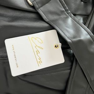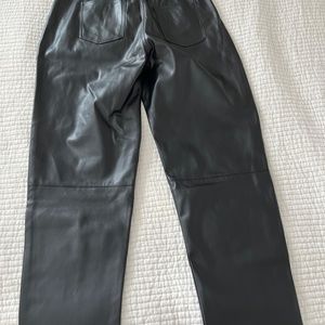 High quality designer faux leather pants. Never been worn. Zip front, adjustable belt, gathered high waist, side pockets, back patch pockets.