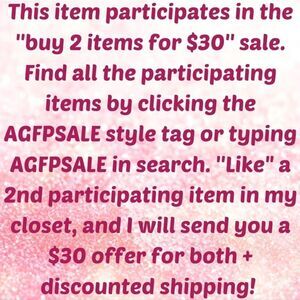 💖 BUNDLE THIS ITEM WITH ANOTHER 2/$30 ITEM IN MY CLOSET, AND I WILL SEND YOU A $30 OFFER ON BOTH! There are hundreds of participating items to choose from. To find these items, type AGFPSALE in the search bar on Poshmark or click the AGFPSALE style tag on this listing!