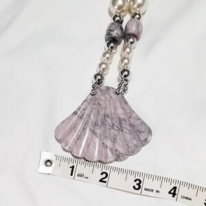 Jewelry faux pearl and lavender marbled stone fan shell statement necklace