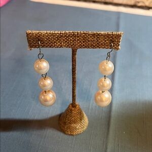 Faux pearl drop earrings, silver-tone shepherds hook. Very classy for any occasion! Preowned but in excellent condition! Great for the holidays! Please see pictures!